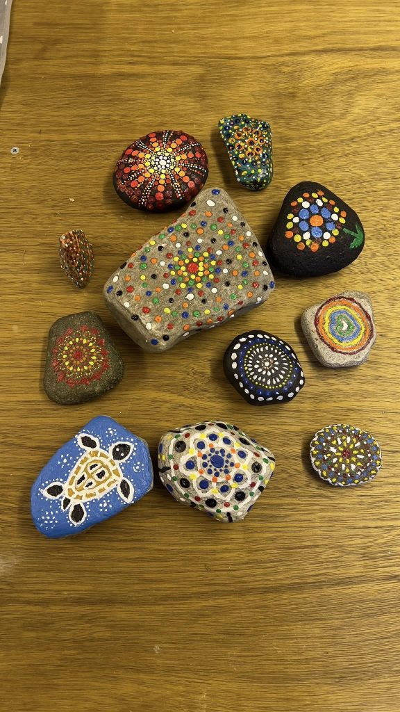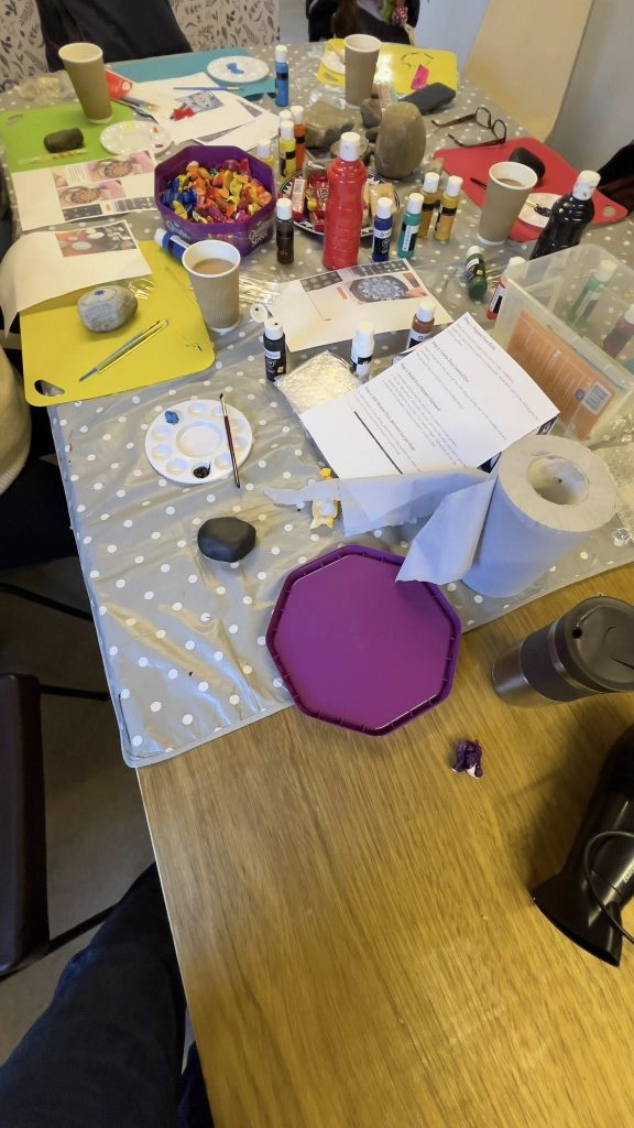 Following our successful joint funding bid with Urram, we have been working together to deliver a series of Wednesday craft workshops. So far, these have included a clay poppy workshop, Christmas decorations, Christmas wreath making, nature journalling, and mandala stone art, with great feedback from participants, making them a real success.